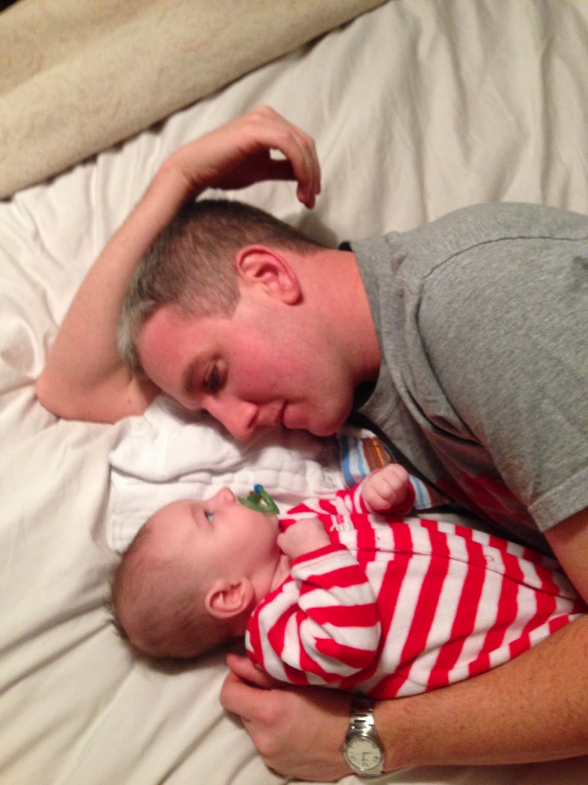- we've said you're a Mama's boy, but really you like Daddy just as much. More than anything you just like to be held.